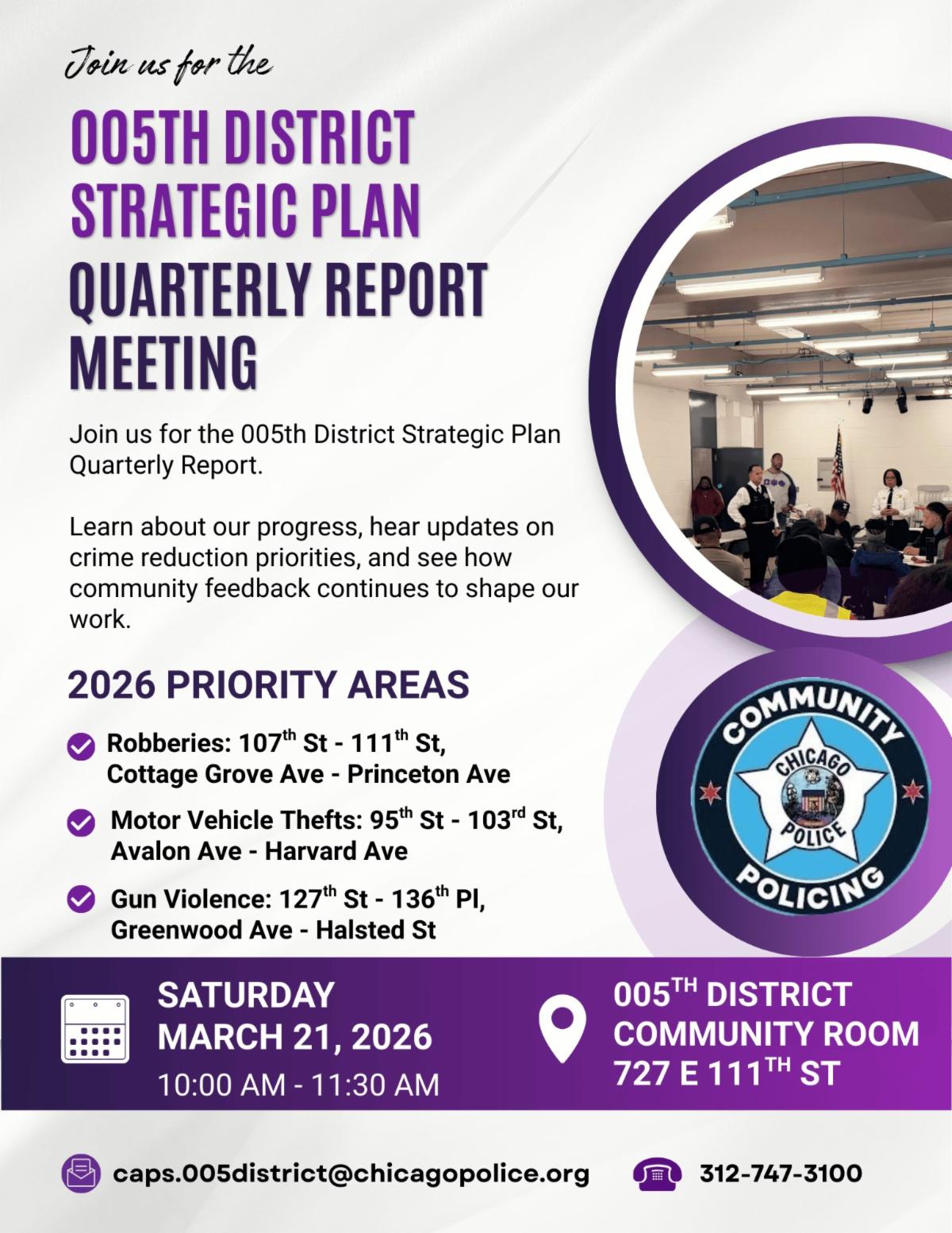 Alderman Anthony A. Beale of the 9th Ward announces several community events, including an oral and photographic history project for Roseland, a qualification questionnaire deadline of April 8, and employer registration due March 31. He also highlights CPD schedules, a wish list shop, and upcoming district resources. No zoning, housing, transit, or budget updates were included in this edition.