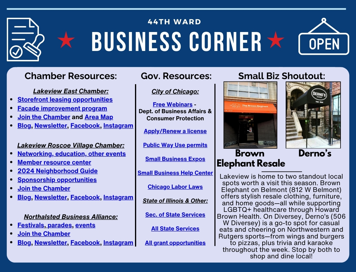 As 2026 budget discussions continue, we’re still gathering feedback from neighbors. If you haven’t yet shared your thoughts, please take a moment to fill out our budget survey here. We appreciate your input on revenue ideas and potential efficiencies to inform our work at City Hall. We’re also still collecting survey feedback on the presence of delivery robots from companies like Serve and Coco in Lakeview. Whether you’ve encountered one on the sidewalk, used them for deliveries, or have concerns or suggestions, let us know your experiences here to help shape our conversations with operators and City departments.