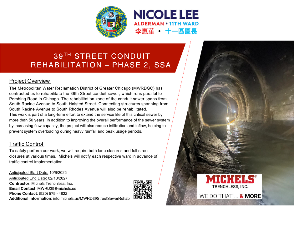 I received notification from Related Midwest that they have received approval from the Illinois Environmental Protection Agency (IEPA) to begin environmental remediation work at The 78, with Phase 1 expected to commence next week and continue for approximately four to six weeks near the northeast corner of the Chicago Fire stadium footprint. Remediation materials and impacted soil (TPH – Total Petroleum Hydrocarbons) will be transported via tarped trucks exiting the site southbound on Wells Street/Wentworth Avenue to 18th Street, west on 18th Street to Canalport Avenue, southwest on Canalport Avenue, then entering eastbound I-90/I-94 and continuing to southbound I-55 for disposal at a licensed landfill in Joliet, Illinois. Truck traffic will average approximately 30 trucks per day between 8:00am to 4:00pm. All trucking operations will follow CDOT guidelines, and street sweeping will be conducted as needed to minimize impacts to surrounding streets and residents. This work will not impact any programming at Ping Tom Memorial Park.