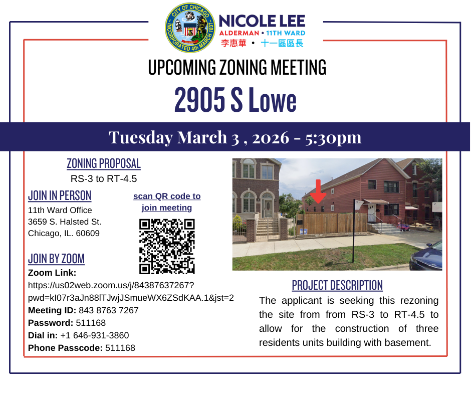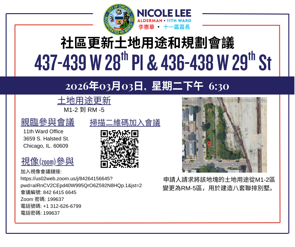 - 437-439 W. 28th Pl. and 436-438 W. 29th St. on March 3 at 6:30PM.