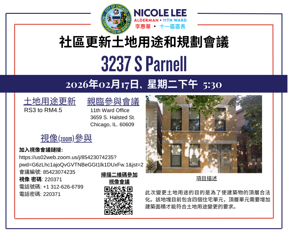 The Zoning Meeting for 3237 S. Parnell is this Tuesday.
