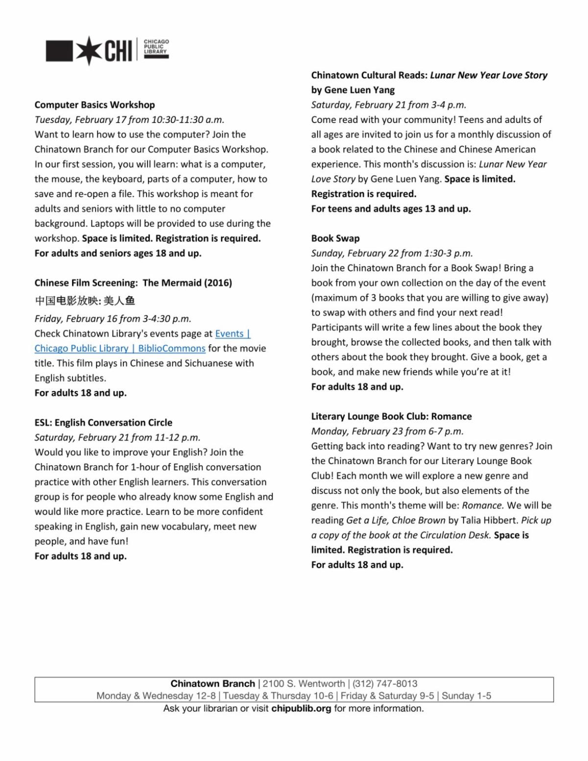 The Beat 914 meeting is at the Chinatown Library on February 25 at 6:30PM.