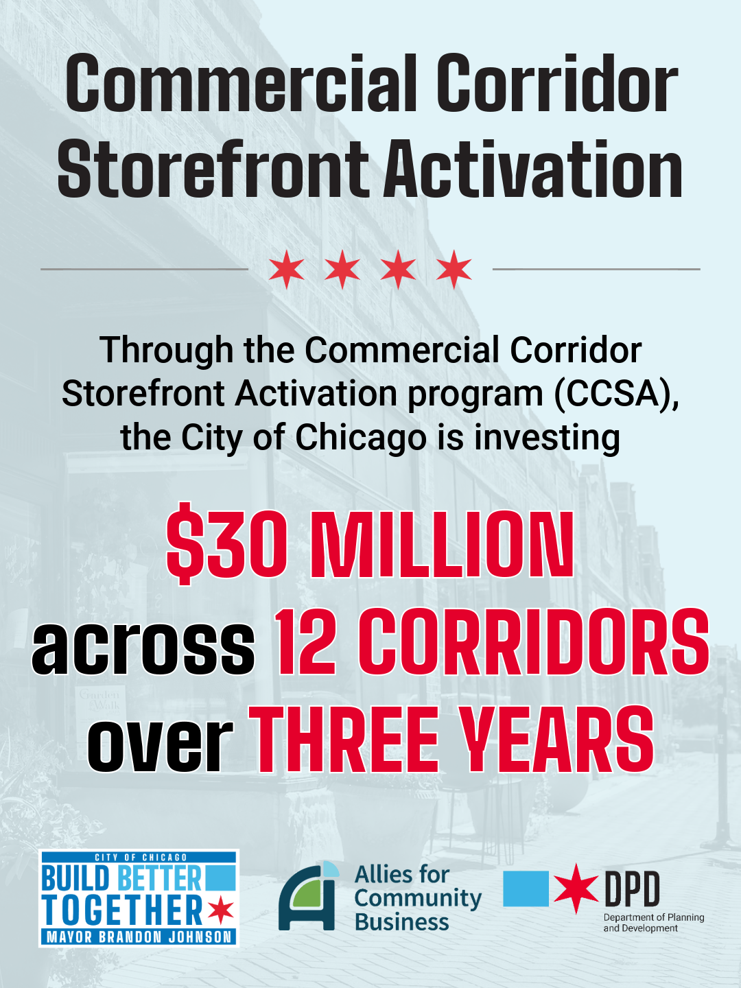 The Department of Planning and Development's Commercial Corridor Storefront Activation (CCSA) program has officially launched and the small business grant application that will fund up to 75% of eligible commercial space improvement costs for qualifying small businesses and property owners.