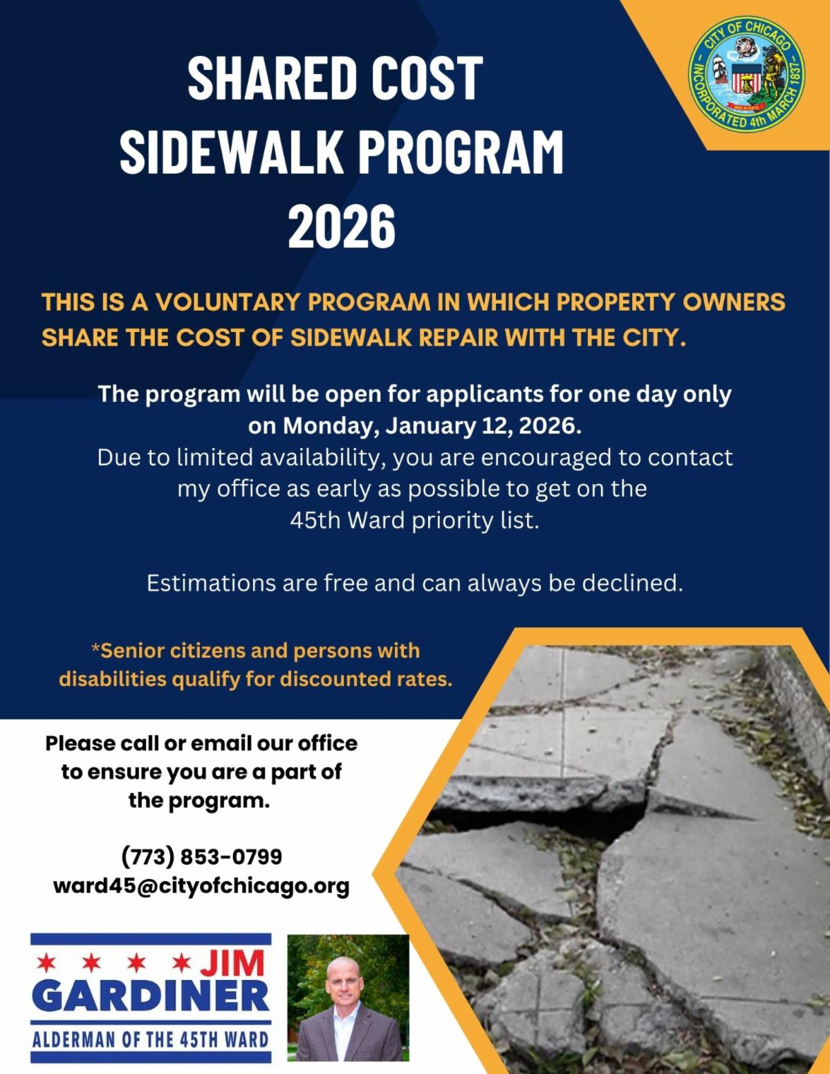 The City of Chicago encourages residents to sign up for the Shared Cost Sidewalk Program which is only available one day for each calendar year.