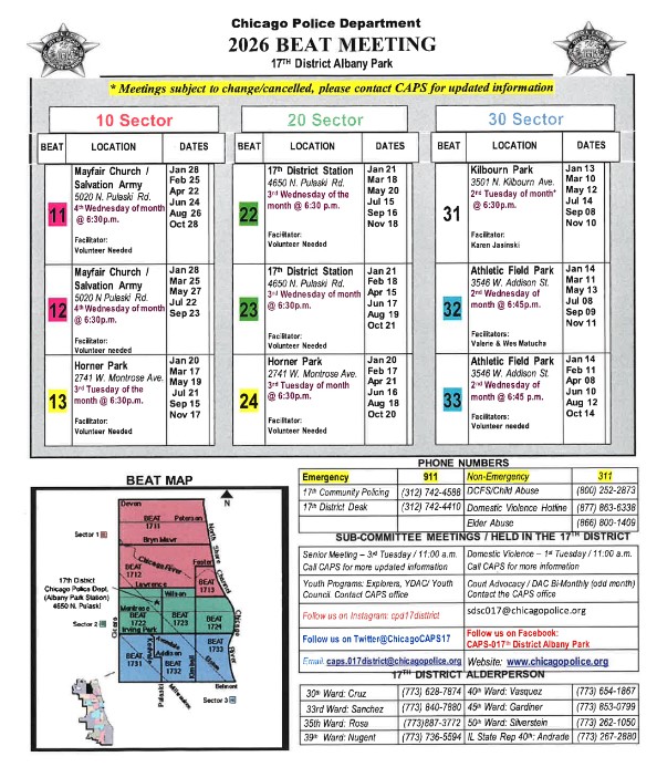 We are currently awaiting updated beat meeting schedules. We will share the full calendar when it is available.