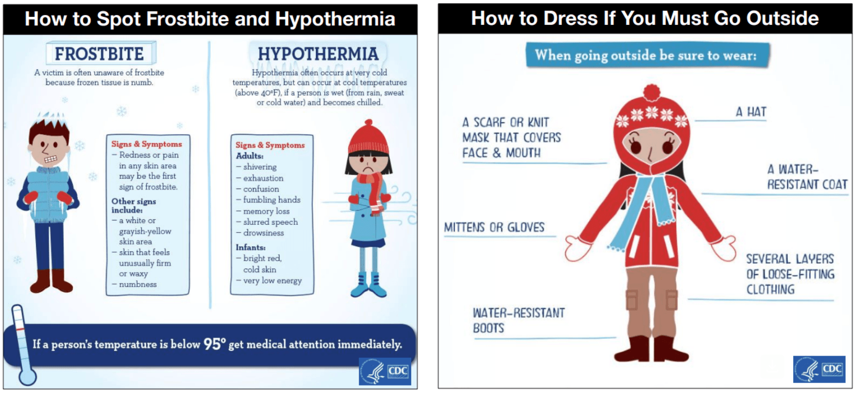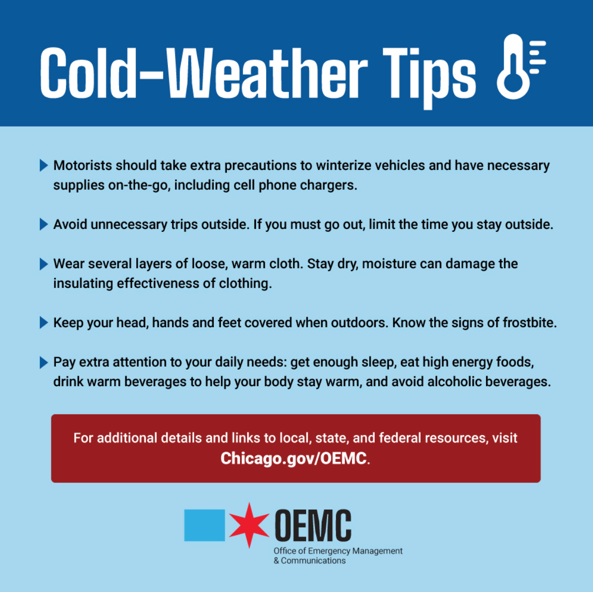 - Residents should know the signs and care of frostbite and hypothermia. For Winter preparation information visit, Chicago.gov/OEMC for details and links to other local, state, and federal resources.