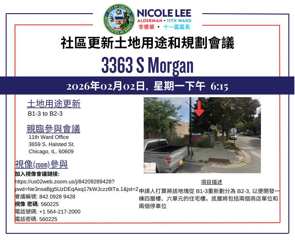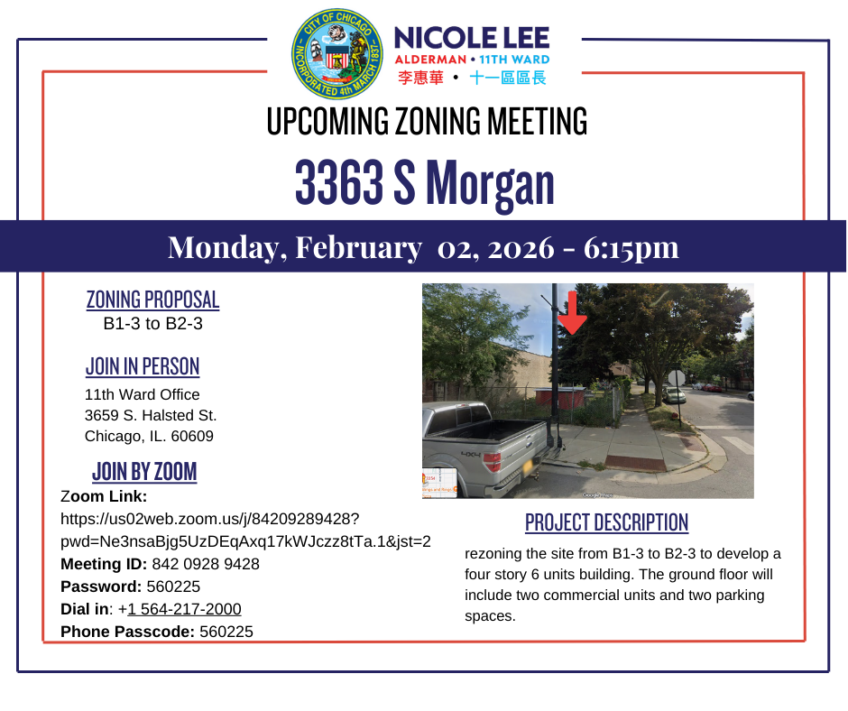 We had a residential development project approved for 2606 S Peoria St. Right next to the Stevenson Expressway, the new project will add additional housing to the area conveniently located next to Palmisano Park!