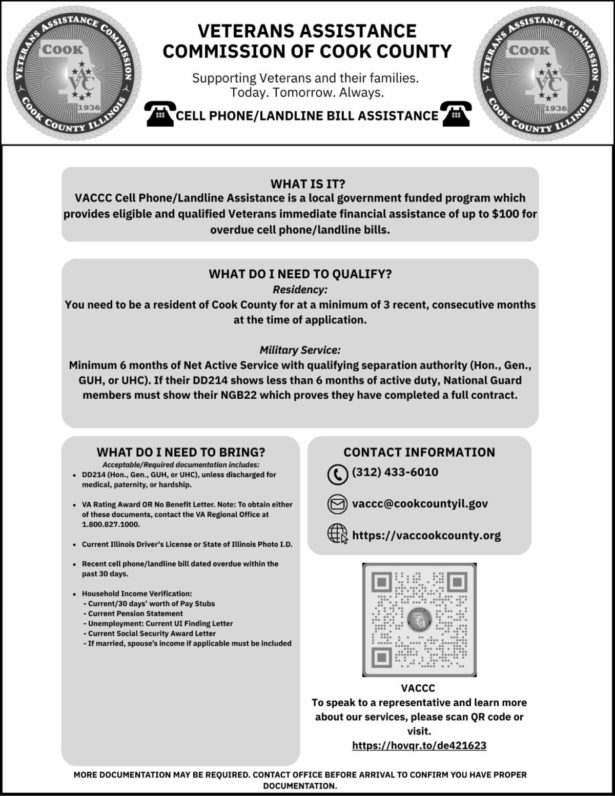 | | Thank you for being part of the 45th Ward community. We are grateful for the opportunity to serve you and remain dedicated to providing exceptional constituent services. | | The Cook County Veterans Assistance Commission visits our office each month to assist veterans in our community. If you or someone you know is a veteran in need of support or has questions, please feel free to stop in. | | Each week, we will highlight a different service offered by the Cook County Veterans Assistance Commission. | | |