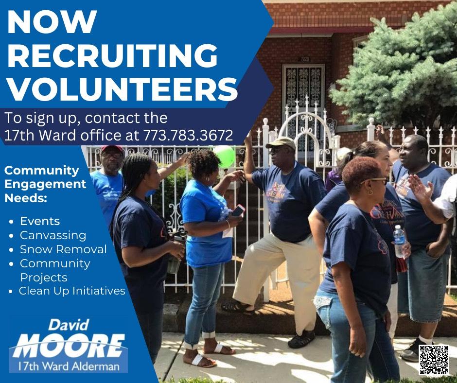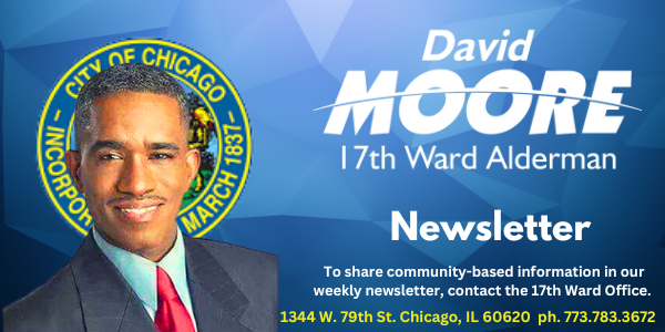 The September 12, 2025 newsletter from 17th Ward Alderman David Moore contains no updates on zoning, development, housing, transit, or budget matters. It primarily invites residents to volunteer and highlights community resources, including job information, education and programming, public safety, and senior services.
