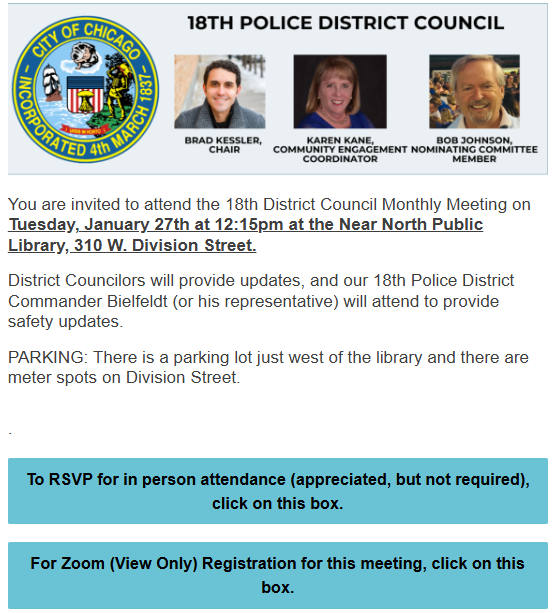 In response to resident concerns and at Alderman Reilly’s request, the first westbound CTA #124 bus will now depart Navy Pier at 8:10am on weekdays. has been in effect since December 21.
