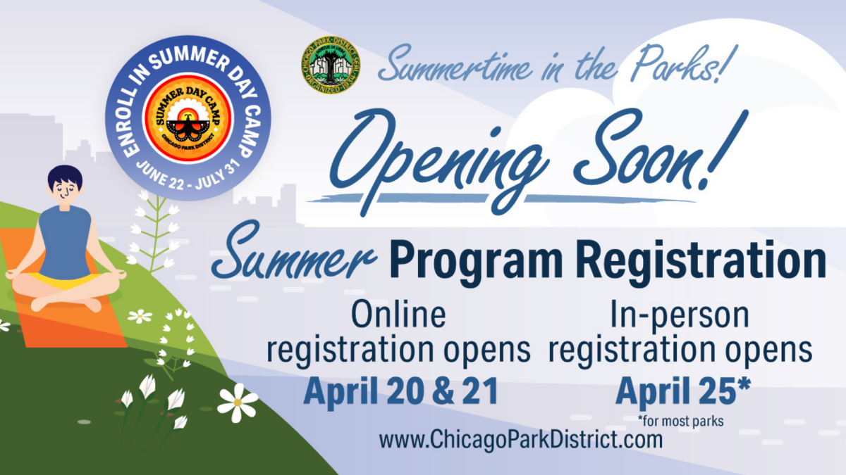 Chicago Park District summer day camp and program registration opens online on Monday, April 20 at 9 a.m. at parks located WEST of California Ave. Online registration for parks EAST of California Ave. opens on Tuesday, April 21 at 9 a.m.
