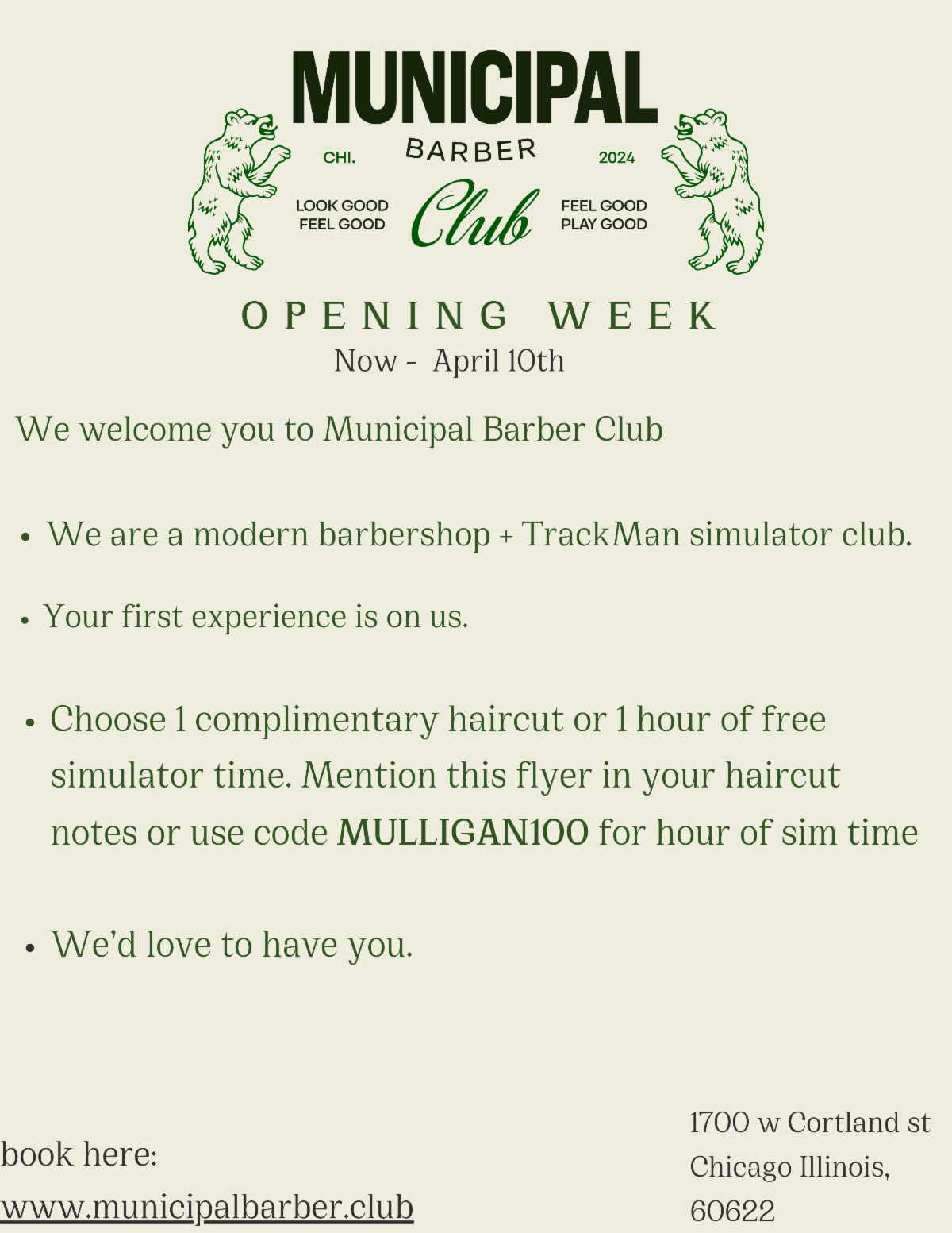 This week we welcome Municipal Barber into the ward! They are not your standard barber shop as they also offer simulated golf as well. See below for their offers for their grand opening.
