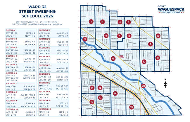 The first week of April, street sweeping will occur in sections 6 and 7 (West Lakeview and Hamlin Park). Click on the map above to see your section's schedule.