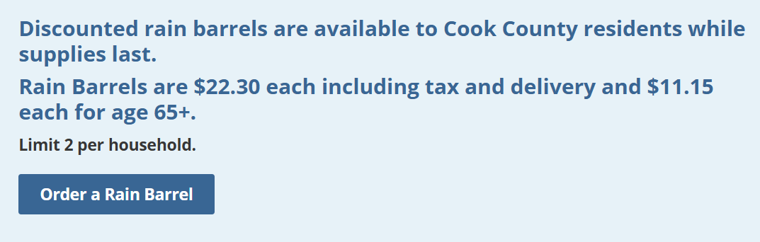 In addition to rain barrels, the MWRD also offers free tree saplings. Click here for more information on this program.