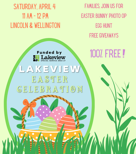 The Easter-themed Lakeview Easter Celebration is perfect for families and small children, located at Lincoln & Wellington. Enjoy a 100% free Easter Bunny photo opportunity, giveaways, and Easter Activities.