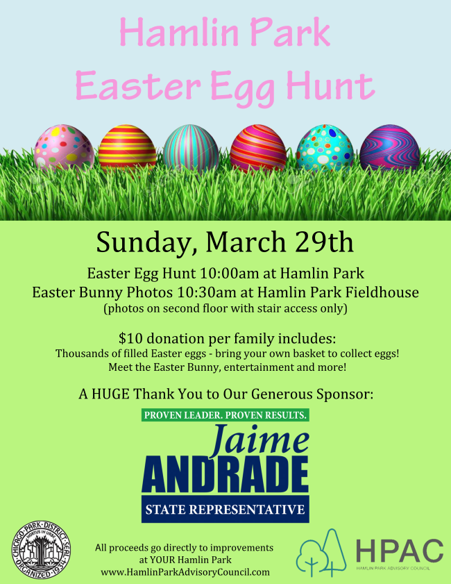 This is one of the most popular Easter events in the 32nd Ward! A $10 donation helps cover the cost of eggs, entertainment, and a photo with the Easter Bunny. You don't want to miss this one!