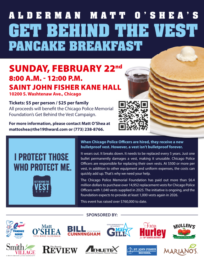 This event is co-hosted by Alderman Matt O'Shea, Senator Bill Cunningham, Representative Mary Gill, Representative Rick Ryan, and Commissioner John Daley.