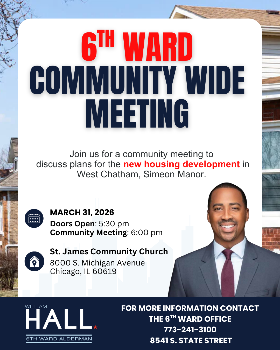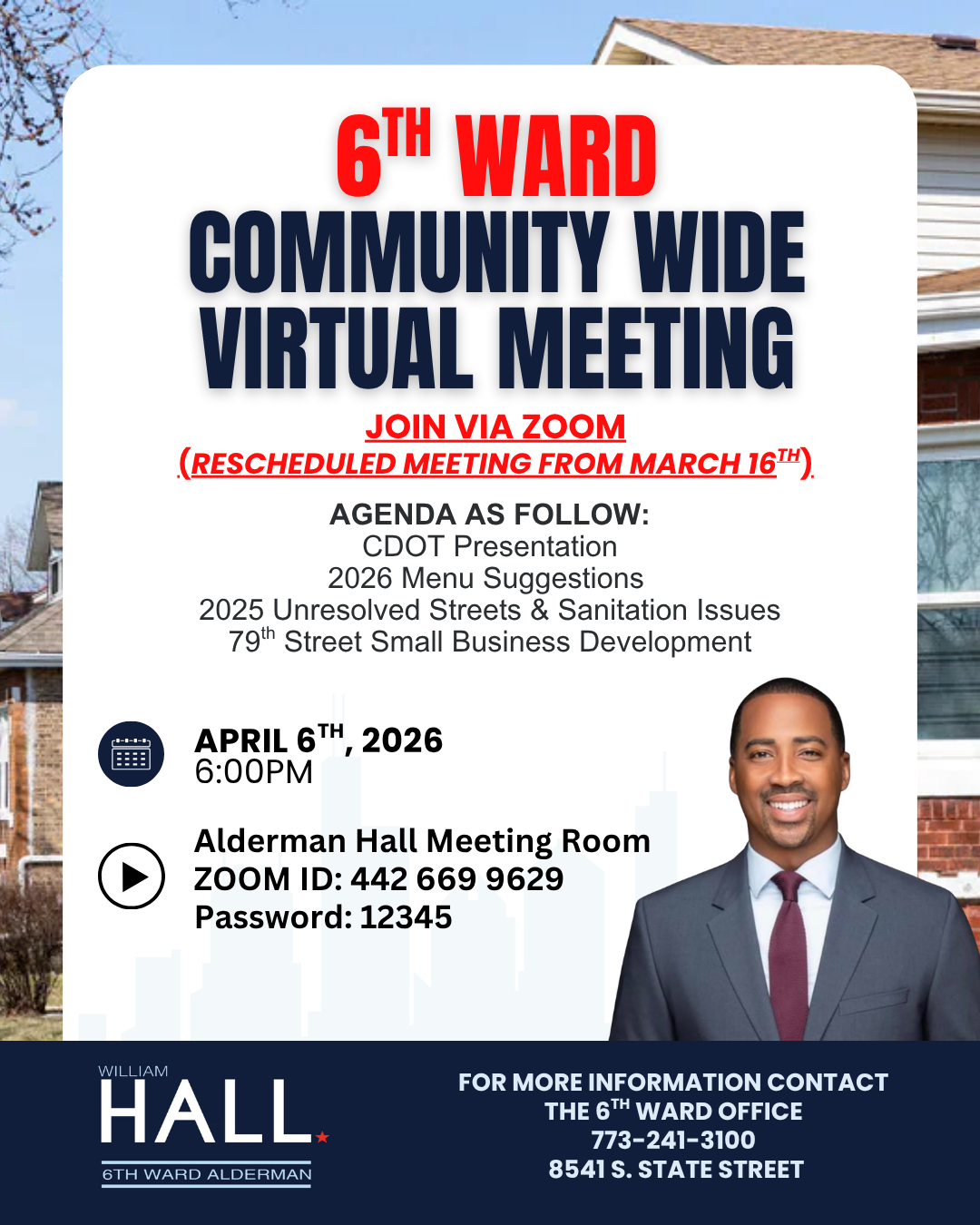 I want to personally invite you to join us for two important upcoming 6th Ward Community Meetings—one in person and one virtual—where we will discuss key updates and hear directly from you.
