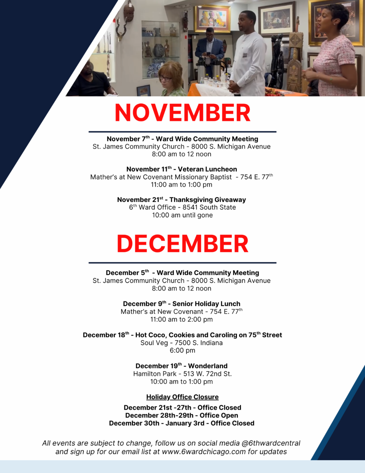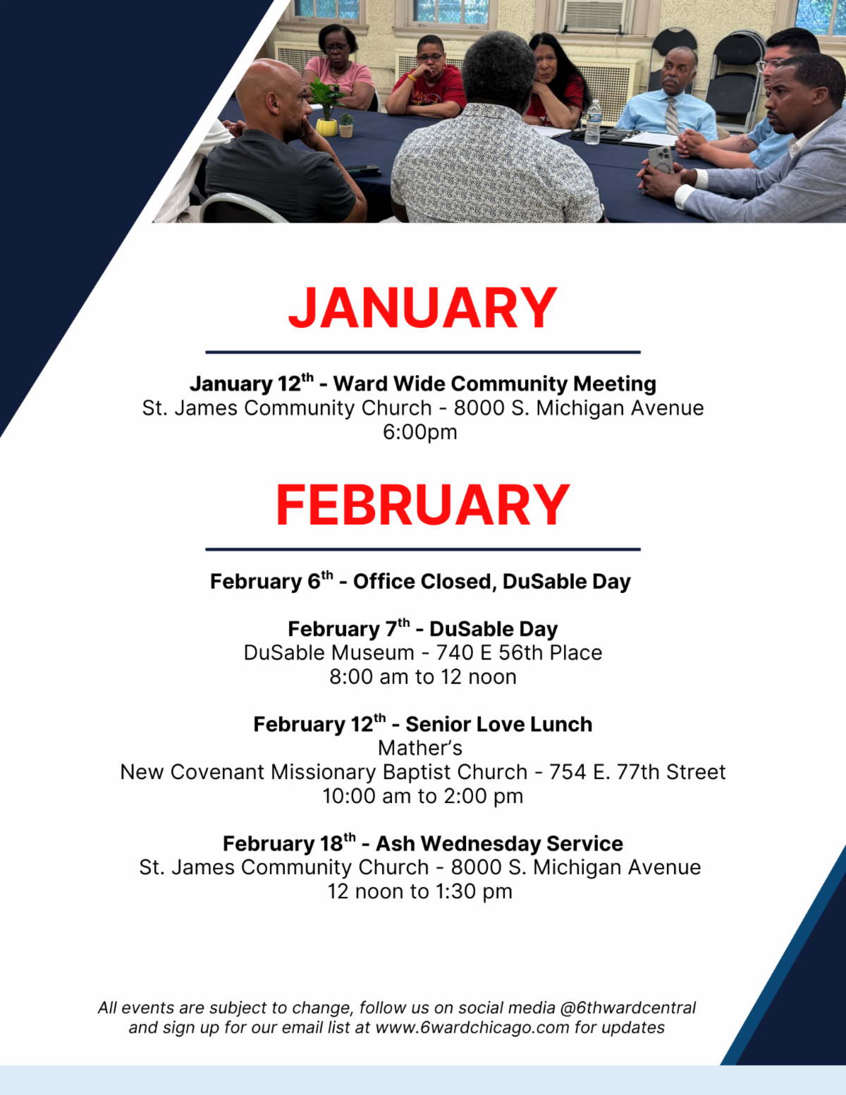 We are starting 2026 focused, energized, and ready to make a real impact. More than 300 residents joined our first community meeting of the year, where we reflected briefly on 2025, shared the full 2026 6th Ward calendar, and most importantly, had honest, meaningful conversations about where we are and where we want to go. I heard you clearly, your concerns, your ideas, your hopes for this ward. You were candid about what you want and need, and I want you to know that your voices continue to guide this work. My commitment remains the same: to build a vibrant and resilient ward, and to do so in partnership with you.